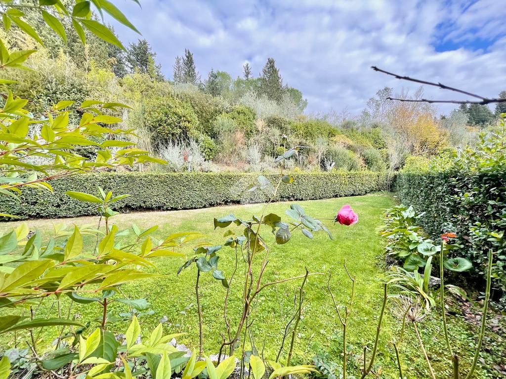 Completano la proprietà un box auto e quattro posti auto, oltre ad un giardino privato di 450 mq che circonda la casa.